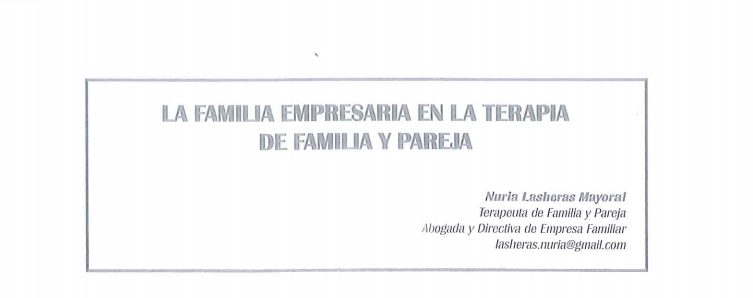 Nuria Lasheras Mayoral, Terapeuta de Familia y Pareja, nos presenta su artículo: » La familia empresaria en la terapia de familia y pareja» publicado en los Cuadernos de Terapia Familiar (STIRPE).